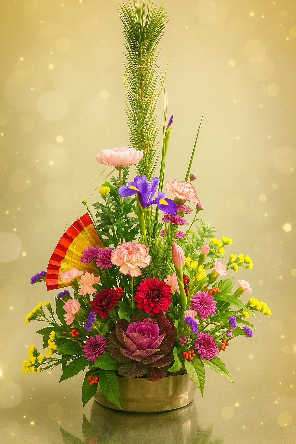 お部屋に飾るだけで、明るく晴れやかな気持ちで新年をお迎えいただけます。初心者の方でも安心してご参加いただけるように、講師が丁寧にサポートいたしますので、初めての方もお気軽にどうぞ。